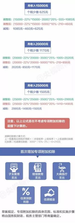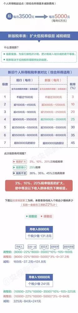 “起征點”上調,稅率結構優化調整,一系列改革動作后,你每月會少繳納多少錢?一張圖看懂↓