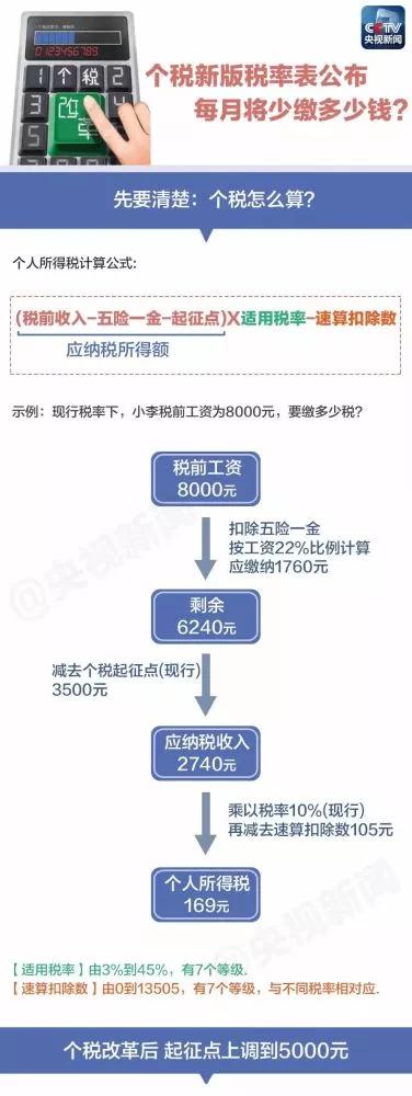 個稅新版“稅率表”公布 你每月將少繳多少錢