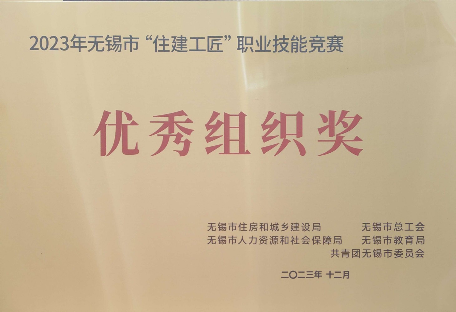 2023.12 2023年無錫市職業技能競賽優秀組織獎
