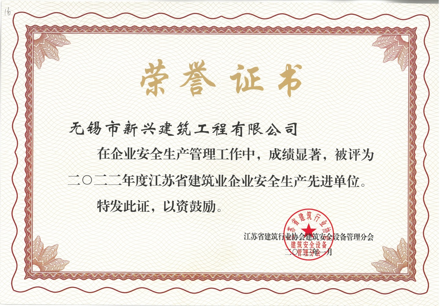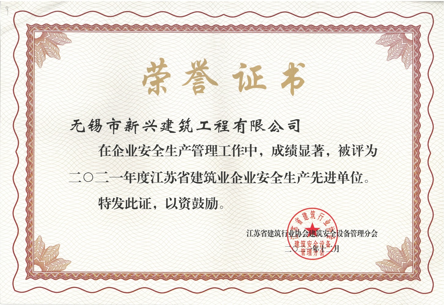 2021.12 2021年度江蘇省建筑業企業安全生產先進單位