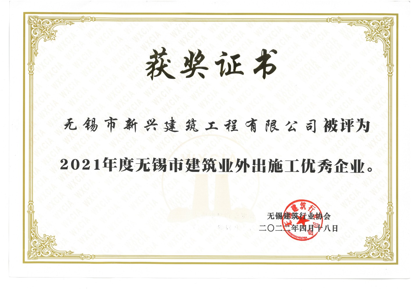 2022.04 2021年度無錫市建筑業外出施工優秀企業