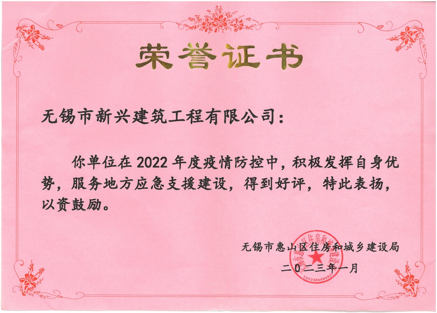 2023.01 惠山區住房城鄉建設局疫情防控表彰