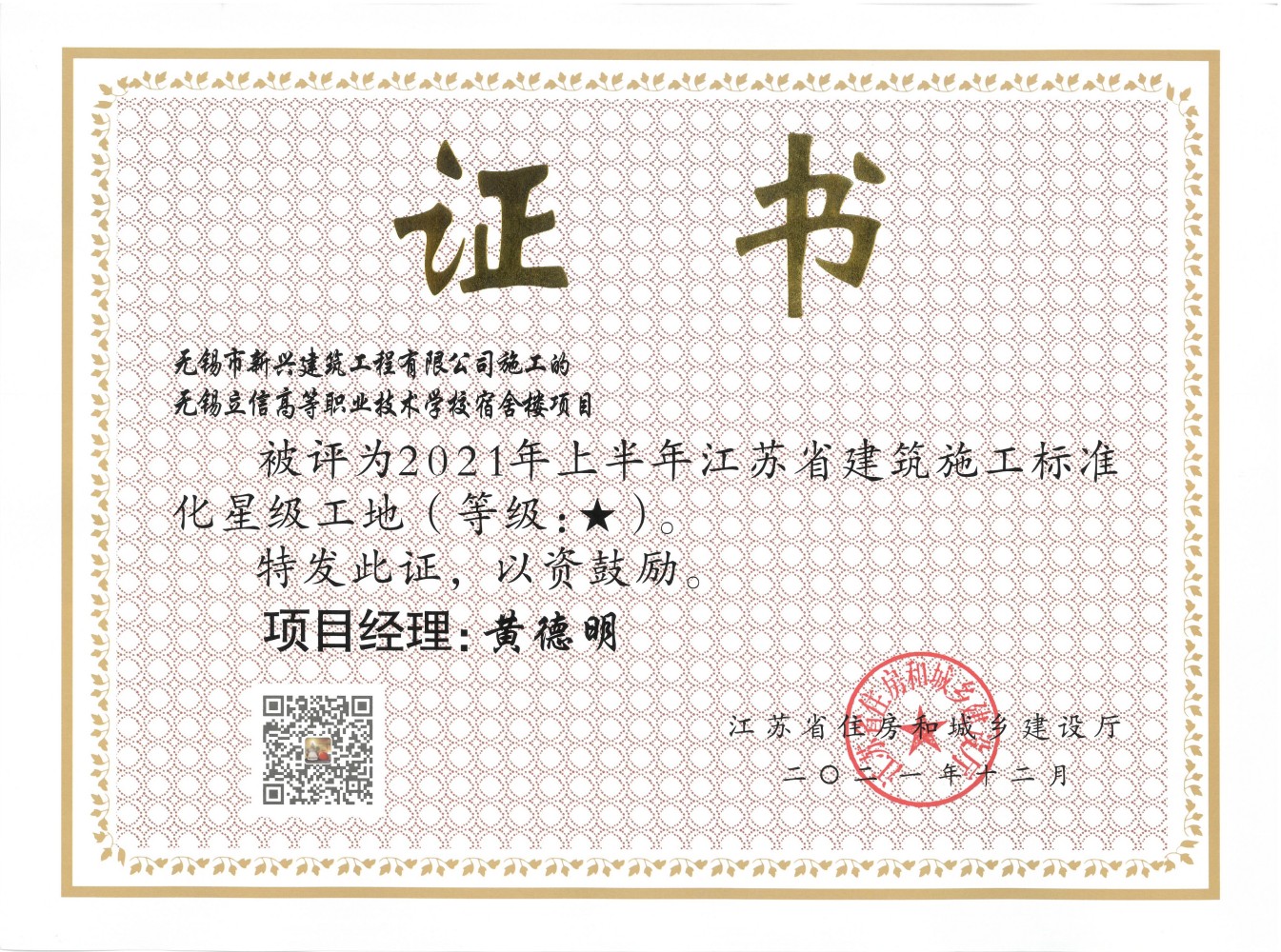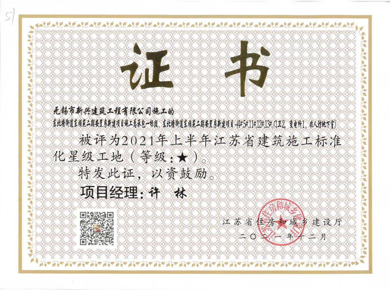 2021.12 立信宿舍樓2021年上半年江蘇省建筑施工標(biāo)準(zhǔn)化星級工地