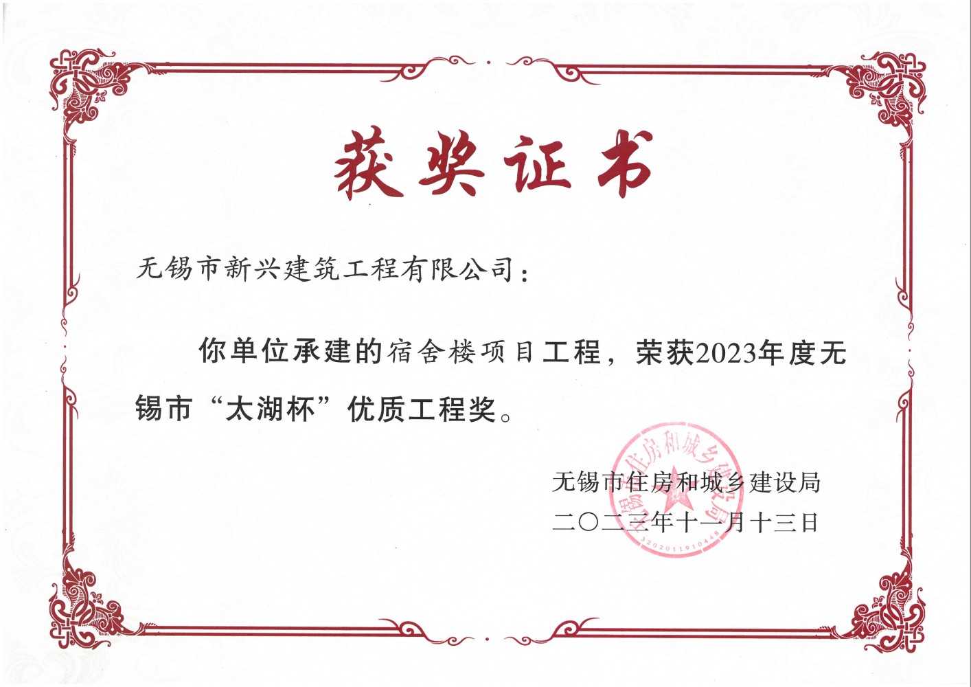 2023.11 新興建筑公司立信宿舍樓2023年度無錫市太湖杯優(yōu)質(zhì)工程獎